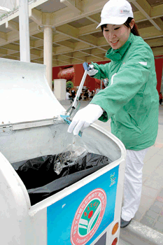 董磊有著五年的法國留學經歷,來世博園前在南匯一家企業從事人事工作。“今年初我所在的單位招募志愿者,服務世博會。作為一名土生土長的上海人,我立刻報了名。”董磊告訴記者,來世博園之前,他并沒有想到自己來這里的工作是和垃圾打交道!爱敃r我被分配的工作是做管理,但來到這里以后我才發現,由于人手等各方面因素,幾乎每天我們都要自己動手收運果殼箱。”董磊告訴記者,現在的工作雖然累,但是能夠為世博會服務,能夠讓自己得到鍛煉,他的心里非常高興!皝硎啦﹫@之前,其實我就做好了心理準備,再苦再累也要上!
