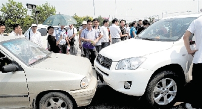 “兩車相撞后,豐田車司機(jī)跳下來,大聲對我說,他在洛陽報警多次,說他家里有毒品,可洛陽警方一直不理他。他跑到鄭州,找公安廳找不到,就在這里撞車。”