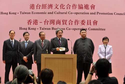 中新網(wǎng)8月23日電 據(jù)香港大公報報道,港臺商貿(mào)與文化交流可望跨進一大步。據(jù)悉,應(yīng)“臺港經(jīng)濟文化合作策進會”邀請,香港財政司司長曾俊華將于本月二十八日以“港臺經(jīng)濟文化合作協(xié)進會”榮譽主席身份,率領(lǐng)逾三十人代表團訪臺四天。訪問團由曾俊華任主席,多名問責局長包括政制及內(nèi)地事務(wù)局局長林瑞麟、商務(wù)及經(jīng)濟發(fā)展局局長劉吳惠蘭以及民政事務(wù)局局長曾德成將以協(xié)進會代表身份隨行。