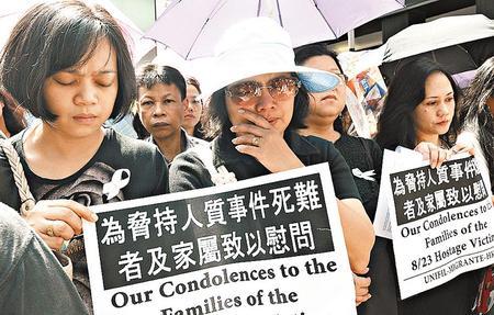 中新網(wǎng)8月30日電 據(jù)香港星島日報報道,香港特區(qū)立法會各政團發(fā)起“悼念菲律賓遇難港人”大游行的同時,多個菲律賓團體二十九日上午也舉行祈禱會表達哀傷,聚集近四百人,悼念馬尼拉挾持人質(zhì)事件的死難者。菲律賓傭工協(xié)會發(fā)言人表示,菲律賓人與港人一樣對事件感到哀傷和憤怒,要求當局徹查事件。