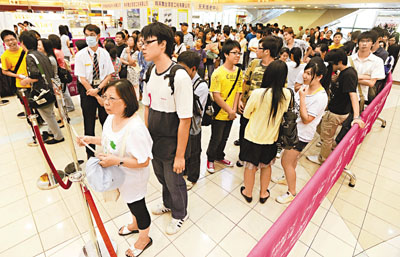 招聘會“常客”天然護理用品中心今年內(nèi)會擴張20間分店,因此這次招聘會希望能夠招聘50位售貨員。該公司營運總監(jiān)紀(jì)雅麗指出,受金融海嘯影響,售貨員底薪連勤工獎由去年的6800元下跌至今年的5800元,但若雇員通過3個月試用期,公司會將底薪連勤工獎?wù){(diào)升至6800元。