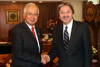 香港財政司司長曾俊華(右)拜會馬來西亞首相納吉布。(圖片來源:香港特區政府網站)