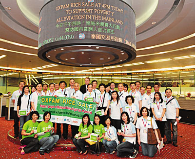 中新網5月31日電 據香港文匯報報道,港交所參與由非牟利機構公益企業(yè)舉辦的2010年“雇員義工周”。日前于港股收市后,港交所行政總裁李小加與董事會成員、高級行政人員及港交所的義工,到交易大堂及港交所的各辦公地點義賣“樂施米”,以支持為幫助內地扶貧工作的“樂施米義賣大行動”。