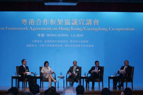 曾蔭權(quán)在致辭時(shí)說(shuō),粵港合作三十多年前已經(jīng)開(kāi)展,未來(lái)三十年將在堅(jiān)實(shí)的合作基礎(chǔ)上,進(jìn)行更清晰的發(fā)展定位和分工。他說(shuō),《框架協(xié)議》把《珠江三角洲地區(qū)改革發(fā)展規(guī)劃綱要》的宏觀(guān)政策,化為有利粵港發(fā)展的具體措施,為深化粵港合作提供了有用的平臺(tái),有助雙方日后爭(zhēng)取更多“先行先試”的措施。