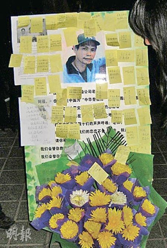 昨傍晚6時,蘭州義工聯盟為首的6個團體,在蘭州市中山橋近水廣場,為阿福舉行燭光悼念會,歷時3個多小時,約有百多人參加。