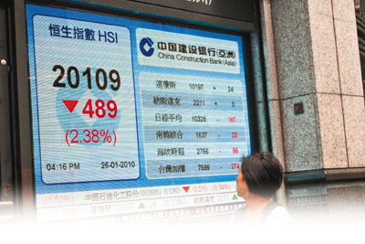中新網(wǎng)1月27日電 據(jù)香港《文匯報》報道,期指結(jié)算臨近,港股沽壓持續(xù),恒指連跌5個交易日,累積跌1568點(diǎn),險守20000點(diǎn)關(guān)口。26日適逢多個壞消息出籠,亞太區(qū)股市近全線下挫,港股由開市跌至收市,全無反撲之力,恒指最多跌逾550點(diǎn),收跌489點(diǎn)或2.4%,跌至20109點(diǎn),成交777億元。