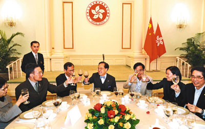 曾蔭權5日在禮賓府筵開5席,來自各黨各派的約40名議員依時赴會,財政司司長曾俊華、律政司司長黃仁龍及大部分局長和副局長也同為座上客。據(jù)引述,曾蔭權在午宴上致辭時向議員們笑說,議事之外都有人情,火花之外都有風花雪月,5日的宴請是希望大家除了公事之外,也有多些溝通和交流。
