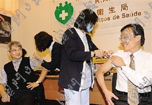 第一階段新流感疫苗接種啟動儀式23日上午10時在衛(wèi)生局行政樓地下大禮堂舉行,衛(wèi)生局長李展?jié)櫋⒏本珠L鄭成業(yè),傳染病防制暨疾病監(jiān)測部協(xié)調(diào)員林松,社工局長葉炳權(quán),教青局長蘇朝暉出席。隨后,社會文化司司長辦公室主任譚俊榮、李展?jié)櫟葏⑴c疫苗接種。