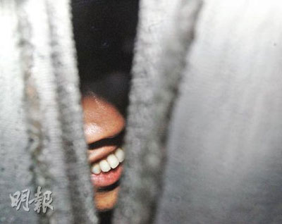 此時(shí),探員在陳宅內(nèi)調(diào)查已近3小時(shí),6時(shí)40分,陳振聰被捕帶返警署。一輛沖鋒車率先駛出大閘開(kāi)路,尾隨一輛深藍(lán)色警方客貨車,只見(jiàn)車身兩邊與后車窗俱掛上布簾,傳媒包圍爭(zhēng)攝車內(nèi)情況,黑暗的車廂內(nèi)乍現(xiàn)一排潔白的牙齒,正是陳振聰?shù)恼信啤八娜f(wàn)”笑容。
