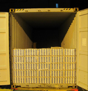 海關反私煙調查組和海港及內河貿易組人員,前日采取聯合行動,在屯門內河船碼頭,抽查一艘船上一個報稱載有“烤爐”的40呎貨柜,在X光機協助下,發現柜內貨物的密度,與報稱的物品完全不符,于是打開貨柜作仔細檢查,終起出852箱、共851.9萬多支、包括各大外國品牌的私煙,市值共約1600萬元。