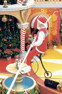 Peter Mario駕著單車在鋼在線表演,這個動作至少要十年功力。(圖片來源:香港明報)