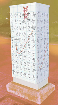曾灶財生前經常在公共物品留下墨寶,包括路邊電箱。(圖片來源:香港明報)