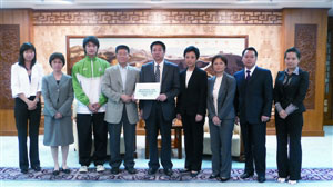 22日共有58個團體、企業和個人向中聯辦送交捐款。中聯辦副主任高燕等代表接收。