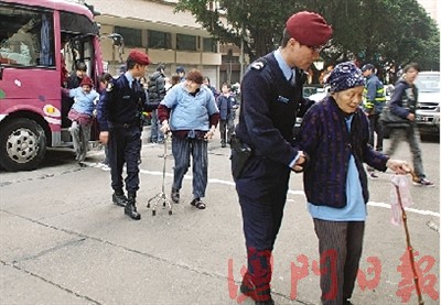 有人報(bào)警求助,多名警員到場(chǎng)調(diào)查。由于旅游巴上的14名長(zhǎng)者行動(dòng)不便,要在安老院人員和警員攙扶到另一大巴,有長(zhǎng)者更需乘坐輪椅。