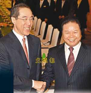 在會議開始前,“兩兄弟”即主動向在場采訪的記者拜個早年,又預(yù)期會議定必成功。湯炳權(quán)笑說,很高興香港在回歸10周年有輝煌成就,而香港于07年經(jīng)濟(jì)又快又好地發(fā)展,人民安居樂業(yè)。他坦言,此際要說的還是以往那一句:“香港好,廣東好;廣東好,香港更好!