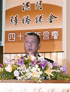歸僑總會會長梁仲虬致詞表示,該會于40年前由一群旅居澳門的世界各地僑胞本著愛國、愛鄉、愛澳,爭取合法權益,促進團結互助的宗旨成立,一直積極支持和參與祖國建設,并與全澳居民一起為澳門的發展、穩定、繁榮盡心盡力,得到社會的廣泛認同和贊賞。