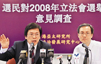 香港中文大學(xué)亞太研究所于本月6至13日,以電話訪問1946名登記選民,了解選民對(duì)2008立法會(huì)選舉的意見。調(diào)查顯示,72.2%選民表示非常關(guān)注或頗為關(guān)注選舉,不太關(guān)注或完全不關(guān)注的有26.9%。