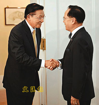 江丙坤今年7月訪問香港,曾與香港特首曾蔭權會面。(圖片來源:文匯報)