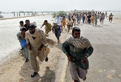 在巴基斯坦南部信德省的一座城鎮薩塔,30多萬居民中的70%因為印度河潰堤而被迫逃亡。