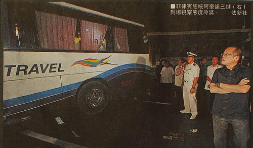 阿基諾三世在處理此次事件上一直備受抨擊,他被指事發時在現場附近一間餐廳跟警察首長吃晚飯,一邊看電視卻沒有做任何事。菲律賓官員則指出,槍手挾持人質時,總統與內閣官員和馬尼拉市長其實是在餐廳內“商討事件,指揮大局”,并不是為了吃晚飯。
