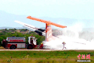 委內瑞拉國家電視臺畫面顯示,飛機在一個垃圾場斷成兩截,機翼飛出幾米外。有當地官員介紹,飛行員就在飛機出事前幾秒曾發出呼救信號。這名沒有透露姓名的官員表示,事故原因可能是因為飛機失控。