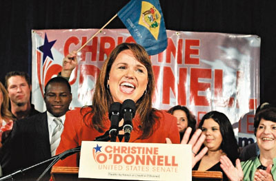 中新網9月16日電 據臺灣“聯合新聞網”報道,美國兩大黨14日在多個州舉行期中選舉初選,極端保守派系“茶黨”(Tea Party)初露鋒芒,攻城略地。沒有公職經驗、之前屢戰屢敗的該黨候選人克里斯汀.奧唐納爾,14日在特拉華州聯邦參議員初選擊敗共和黨支持的現任眾議員卡索,震驚美國政壇。