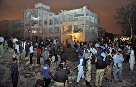 報道援引目擊者的描述稱,疑似激進分子先向這個建筑開槍,然后引爆汽車炸彈,將卡拉奇刑事偵查局辦公室的總部夷為平地。至少有90人在爆炸中受傷,電視畫面顯示救援人員把受害者從廢墟中救出來。