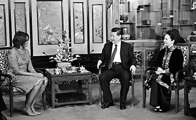 習近平歡迎米歇爾女士偕母親羅賓遜夫人和女兒訪華,請她轉達對奧巴馬總統的親切問候和良好祝愿。