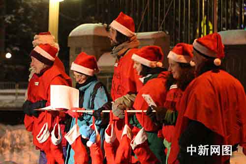 中新網渥太華12月13日電(韓瀟)12日晚,環保組織“為地球而戰”成員打扮成圣誕老人,提著代表工業污染的煤炭來到加拿大聯邦保守黨政府總理哈珀家“送禮”,以抗議加政府無視北極冰蓋融化,破壞巴厘島氣候變化會議的行為。警察戒嚴保護總理宅邸,與抗議者短暫接觸后,逮捕了部分“圣誕老人”。