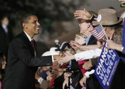 美國當地時間20日,奧巴馬在艾奧瓦州與支持者們握手。