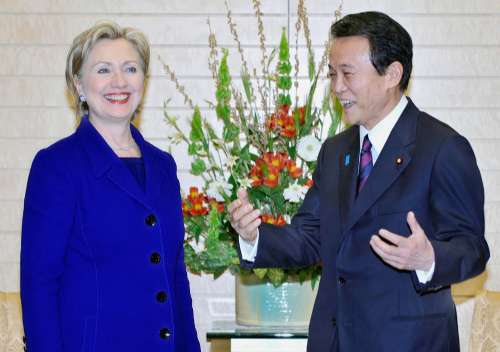 希拉里訪日推動"和諧外交" 邀麻生下周訪美(圖)