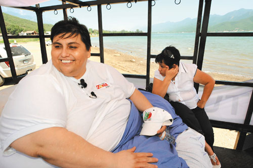 中新網(wǎng)8月12日電 綜合報道,重達(dá)310公斤的墨西哥超級胖子烏里韋10日在女友陪伴下,搭乘特制拖拉貨車,到蒙特雷一座湖邊賞景。