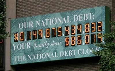 中新網(wǎng)10月10日電 作為美國國家債務(wù)的計(jì)數(shù)器,鄰近紐約市時報(bào)廣場的國債鐘計(jì)位數(shù)字已經(jīng)用光,無法照常記錄滾雪球般的國債金額。為應(yīng)對這一狀況,“10萬億”中的打頭數(shù)字“1”臨時擠進(jìn)左邊顯示美元符號的數(shù)格。國債鐘9日顯示,聯(lián)邦政府所欠債務(wù)已接近10.2萬億美元。