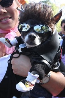 各種各樣的寵物狗都裝扮一新,有的像驕傲的公主,有的像年老的祖母,有的打扮成電影中的角色頭戴墨鏡扮老大,還有的打扮成圣誕老人,真是創意無限。