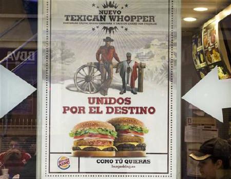 中新網(wǎng)4月15日電 據(jù)路透社報道,漢堡王公司為最新推出的德州-墨西哥式漢堡所做的廣告激怒了墨西哥官員,因該廣告中的一名墨西哥男子身披該國國旗蹲坐著。