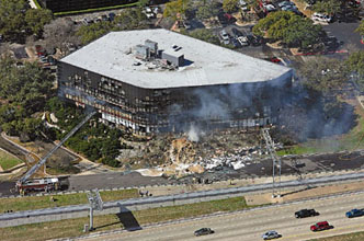 事發于美國時間早上約9時56分,53歲的軟件工程師斯塔克駕駛一架Piper Cherokee PA-28小型飛機,首先在低空盤旋,然后直沖7層高的國內稅收署辦公大樓的2樓,隨即引起猛烈爆炸,并燃起大火,冒出大量濃煙。事發時大樓內約有190人,各人驚慌逃生,一些人在情急下從窗口跳下。