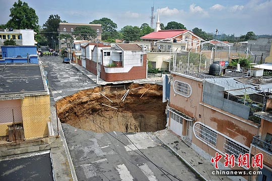 中新網6月2日電 據香港《文匯報》報道,熱帶風暴阿加莎橫掃中美洲,造成至少150人死亡。受到連場暴雨影響,危地馬拉城一處出現地面下陷,形成一個深60米、直徑30米的地洞。
