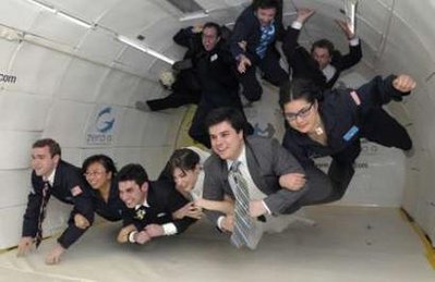 飛機(jī)從佛羅里達(dá)州泰特斯維爾起飛,在墨西哥灣上空飛行的一個(gè)小時(shí)期間,以拋物線的方式飛行,先后16次疾升俯沖,每次產(chǎn)生30秒的無(wú)重力狀態(tài),使所有乘客感受總共7分鐘半的失重狀態(tài),凌空漂浮和互相碰撞。