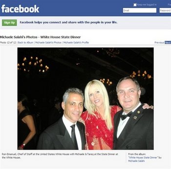報道表示,薩拉希夫婦二人在宴會上落落大方,毫不心虛,他們先后與美國副總統拜登、白宮幕僚長、海軍陸戰隊高官、美國哥倫比亞電視臺知名主播以及美國廣播公司電視臺主持人親密合影。在一張照片中,副總統拜登還挽著薩拉希夫人的手。薩拉希夫婦事后將照片放上社交網站Facebook大肆炫耀,令白宮顏面無存。