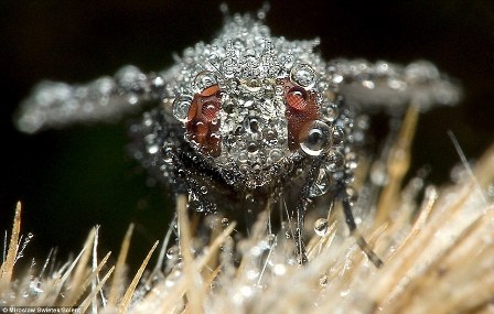 攝影師攝帶露水昆蟲 蒼蠅飛蛾身披"珠寶"(組圖)