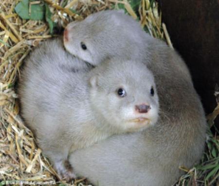 藍色星球水族館經(jīng)理湯姆.康威爾(Tom Cornwell)表示,一般情況下,動物寶寶應該會有與父母相同的體貌特征,但這兩只白色水獺寶寶的父母皮毛都為黑棕色。