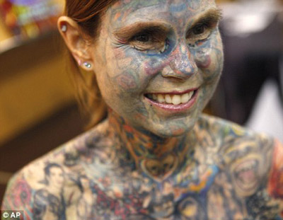 中新網5月27日電 據英國媒體報道,美國女孩希努斯(Julia Gnuse)全身95%都覆蓋著五顏六色的紋身。她也被吉尼斯世界紀錄評為世界上紋身最多的女人。5月26日,她出席了紐約圖書博覽會,也展示了自己身上的紋身。