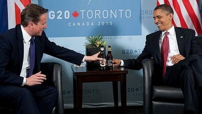 這個月中旬,奧巴馬在與卡梅倫通電話討論國際大事的同時,曾為英國與美國的足球隊在世界杯比賽打賭,結(jié)果兩隊比賽打成平手,沒有輸贏,不過,兩人周末在加拿大開會碰面時,還是互請對方喝啤酒,聊表致意。