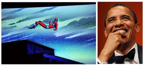 中新網(wǎng)6月21日電 一段把美國(guó)總統(tǒng)奧巴馬描繪成排除萬(wàn)難的超級(jí)英雄大加諷刺的音樂(lè)錄像,19日在美國(guó)的電臺(tái)及電視臺(tái)派員協(xié)會(huì)周年晚宴上播放。有份列席的奧巴馬觀賞這段錄像時(shí)笑得合不攏嘴。