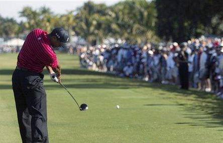 報道稱,成群結隊的觀眾擁擠在狹小的草地上,爭先恐后的目睹“老虎”伍茲在練習中看似漫不經心的揮桿。
