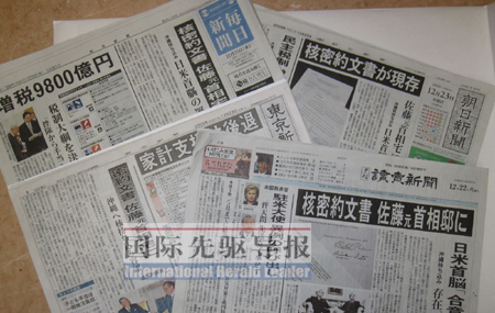 《國際先驅導報》記者劉華發(fā)自東京 12月22日,日本《讀賣新聞》晚報在頭版頭條刊文稱,一份由美國前總統(tǒng)尼克松和日本前首相佐藤榮作簽署的有關日美兩國“核密約”的文件,一直保存在日本前首相佐藤榮作的舊宅。