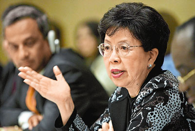 據香港《文匯報》報道,陳馮富珍在日內瓦的世衛年會上說:“當我看見更多來自病毒本身和疾病蔓延的跡象,我必然會作出一個困難的決定,不會危及全球人的健康。”