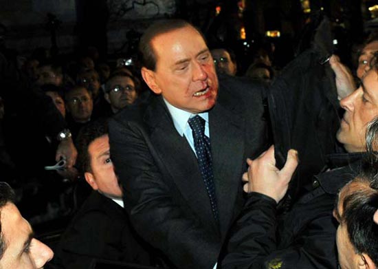據(jù)悉,就在集會快要結(jié)束時上演了貝盧斯科尼遭暴力襲擊的一幕,當時貝盧斯科尼正在一群支持者中為他們簽名。一名男子手持一個米蘭大教堂的模型打在貝盧斯科尼的臉上。之后警方將該男子制服,貝盧斯科尼則被迅速送往醫(yī)院。醫(yī)生稱其沒有生命危險,只是鼻骨骨折,兩顆牙齒松動,嘴唇大量出血需要縫針。