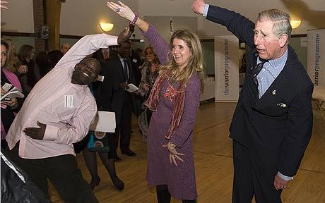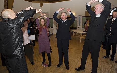 查爾斯王儲似乎對氣功很感興趣,氣功教練蓋伊·何教了他兩個簡單動作:先將右手舉到頭頂,手掌向上舉起,左手也做同樣的動作,最后雙手重復(fù)這個動作。蓋伊告訴他,想象自己手掌中正有一個能量球,但查爾斯的“能量球”掉下來兩次。“他的能量很好,他的精神力也很集中,但他需要一點兒技術(shù)!辈闋査垢嬖V另一位練習(xí)者說:“幾年前我的胳膊曾有兩處骨折,這讓我做起動作來很難。”