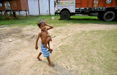 中新網(wǎng)3月11日電 據(jù)外電報(bào)道,印度一名出生即長有4支胳膊與4條腿的7歲男孩庫馬爾,被當(dāng)?shù)睾芏嘤《冉掏疆?dāng)宗教偶像崇拜。而他的父親則表示很不舒服,他想要的就是給庫馬爾做一次手術(shù),讓他恢復(fù)正常人身。